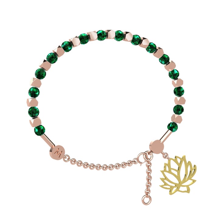 Mitra Lotus Bilezik - Yeşil kuvars 18 ayar rose altın bilezik