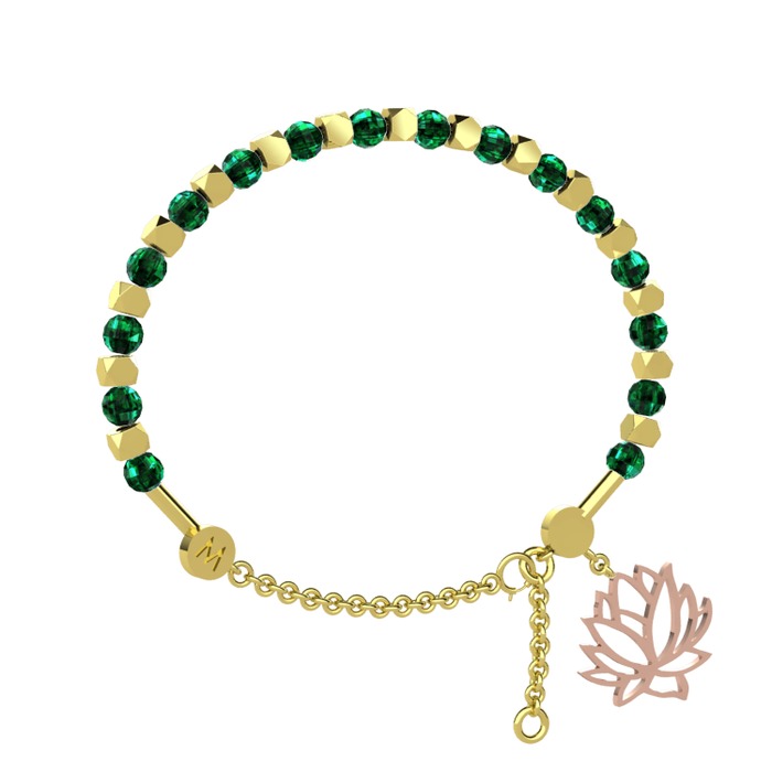 Mitra Lotus Bilezik - Yeşil kuvars 8 ayar altın bilezik