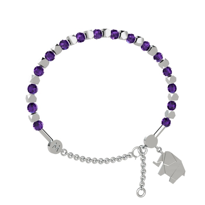 Mitra Origami Fil Bilezik - Ametist 14 ayar beyaz altın bilezik