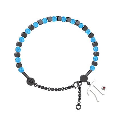 Akuamarin ve kök yakut 925 ayar siyah rodyum kaplama gümüş bilezik