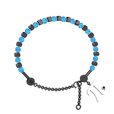 Akuamarin ve siyah zirkon 925 ayar siyah rodyum kaplama gümüş bilezik