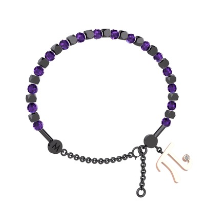 Ametist ve beyaz zirkon 925 ayar siyah rodyum kaplama gümüş bilezik