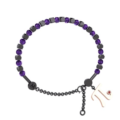 Ametist ve garnet 925 ayar siyah rodyum kaplama gümüş bilezik