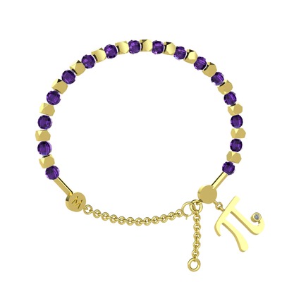 Ametist ve pırlanta 925 ayar altın kaplama gümüş bilezik (0.015 karat)