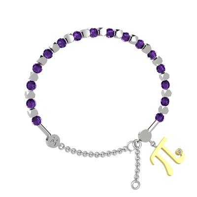 Ametist ve swarovski 14 ayar beyaz altın bilezik