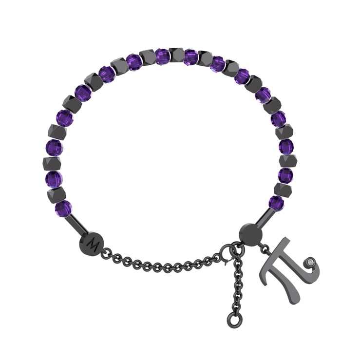 Mitra Pi Bilezik - Ametist ve swarovski 925 ayar siyah rodyum kaplama gümüş bilezik