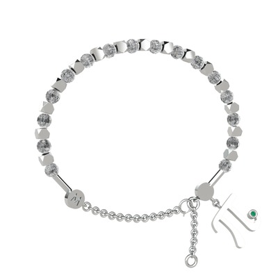 Beyaz zirkon ve kök zümrüt 8 ayar beyaz altın bilezik