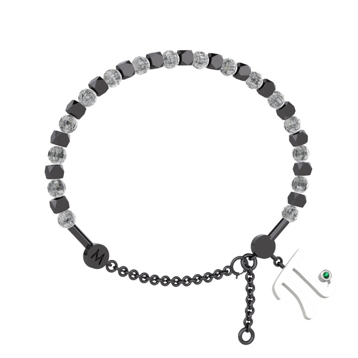 Beyaz zirkon ve yeşil kuvars 925 ayar siyah rodyum kaplama gümüş bilezik