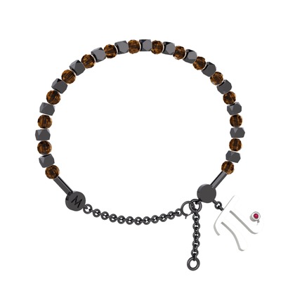 Dumanlı kuvars ve rodolit garnet 925 ayar siyah rodyum kaplama gümüş bilezik