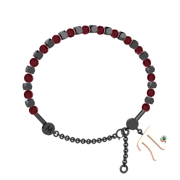 Kök yakut ve yeşil kuvars 925 ayar siyah rodyum kaplama gümüş bilezik