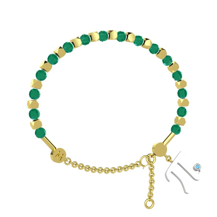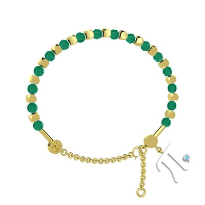 Kök zümrüt ve akuamarin 14 ayar altın bilezik