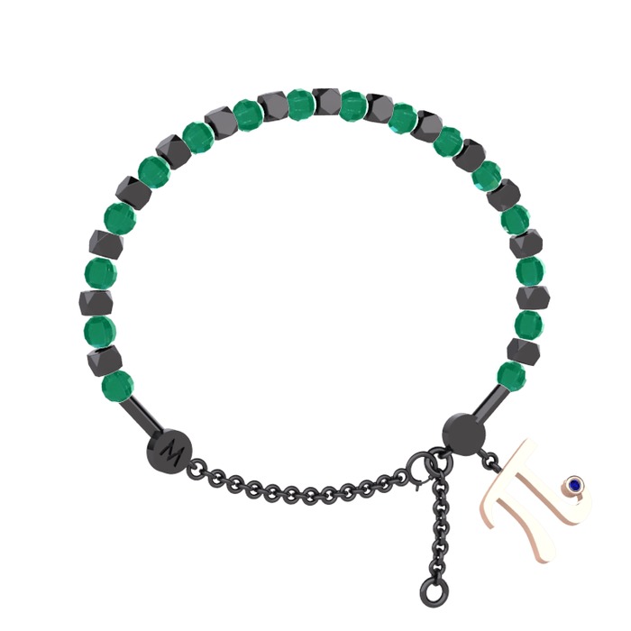 Kök zümrüt ve lab safir 925 ayar siyah rodyum kaplama gümüş bilezik