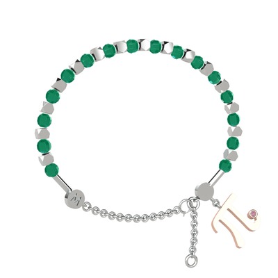 Kök zümrüt ve pembe kuvars 925 ayar gümüş bilezik