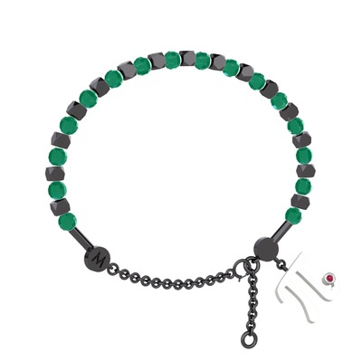 Kök zümrüt ve rodolit garnet 925 ayar siyah rodyum kaplama gümüş bilezik