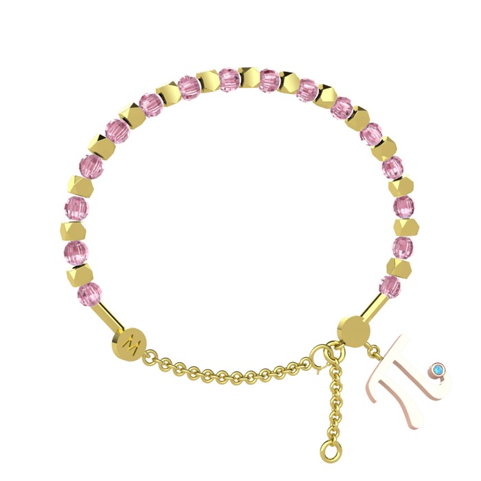Pembe kuvars ve akuamarin 8 ayar altın bilezik
