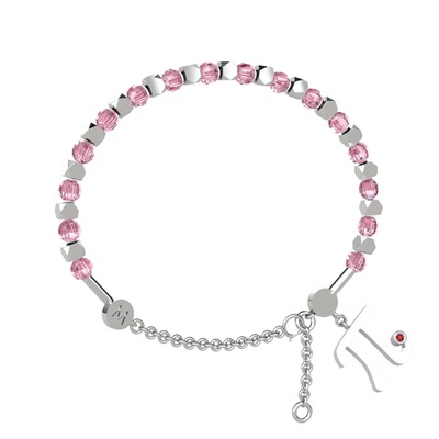 Pembe kuvars ve garnet 18 ayar beyaz altın bilezik