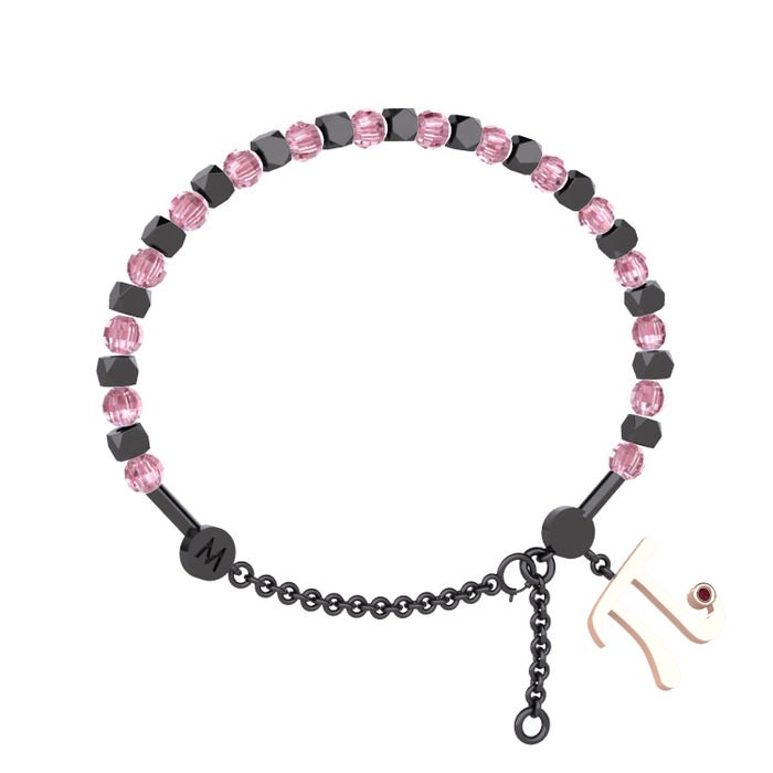 Pembe kuvars ve kök yakut 925 ayar siyah rodyum kaplama gümüş bilezik