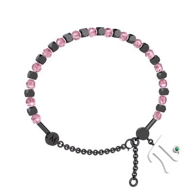 Pembe kuvars ve yeşil kuvars 925 ayar siyah rodyum kaplama gümüş bilezik