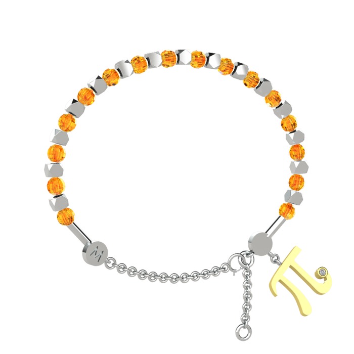 Sitrin ve beyaz zirkon 14 ayar beyaz altın bilezik