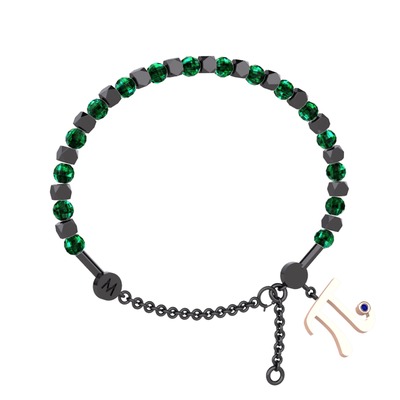Yeşil kuvars ve lab safir 925 ayar siyah rodyum kaplama gümüş bilezik