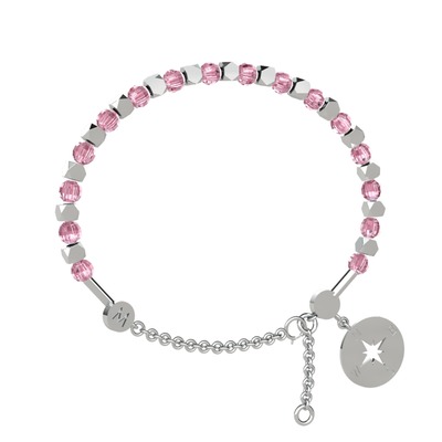 Pembe kuvars 8 ayar beyaz altın bilezik