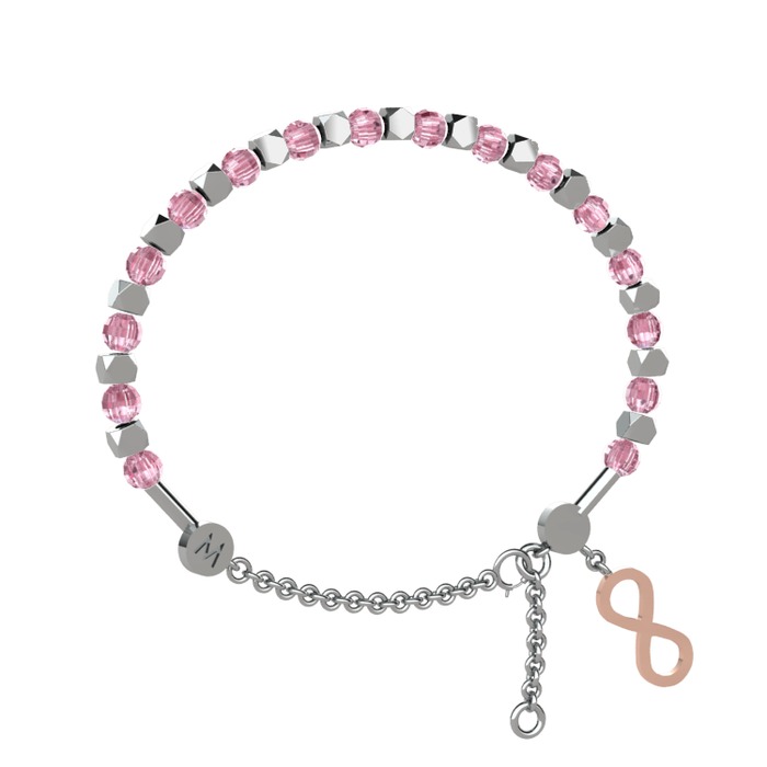 Pembe kuvars 8 ayar beyaz altın bilezik