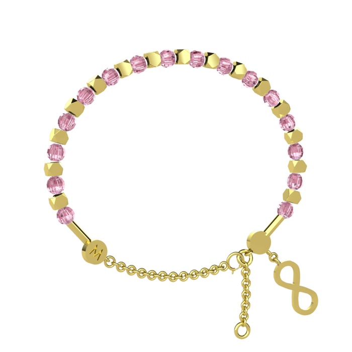 Pembe kuvars 925 ayar altın kaplama gümüş bilezik