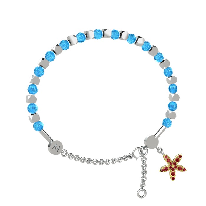 Akuamarin ve garnet 8 ayar beyaz altın bilezik