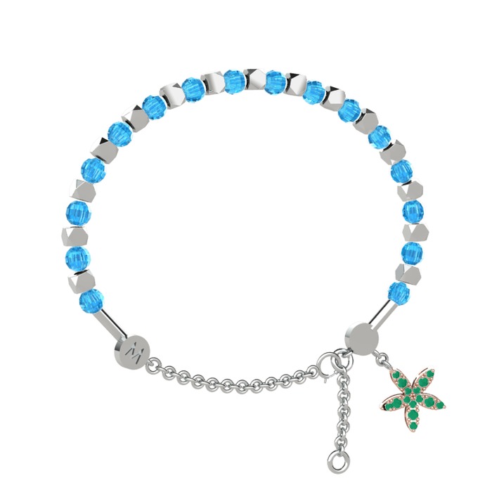 Akuamarin ve kök zümrüt 18 ayar beyaz altın bilezik