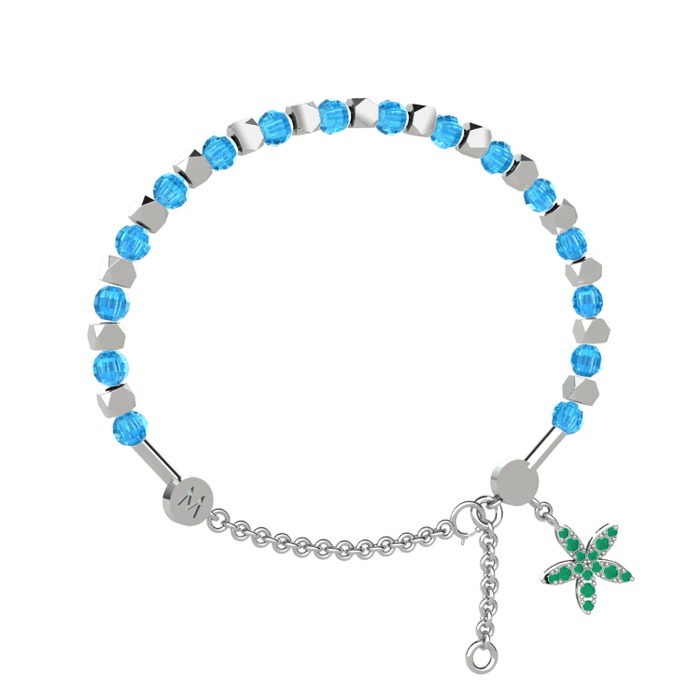 Akuamarin ve kök zümrüt 8 ayar beyaz altın bilezik