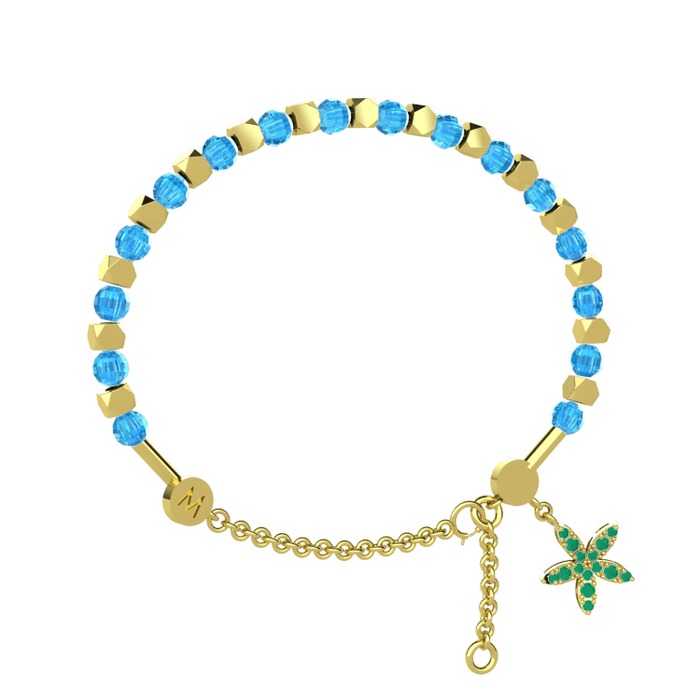 Akuamarin ve kök zümrüt 925 ayar altın kaplama gümüş bilezik