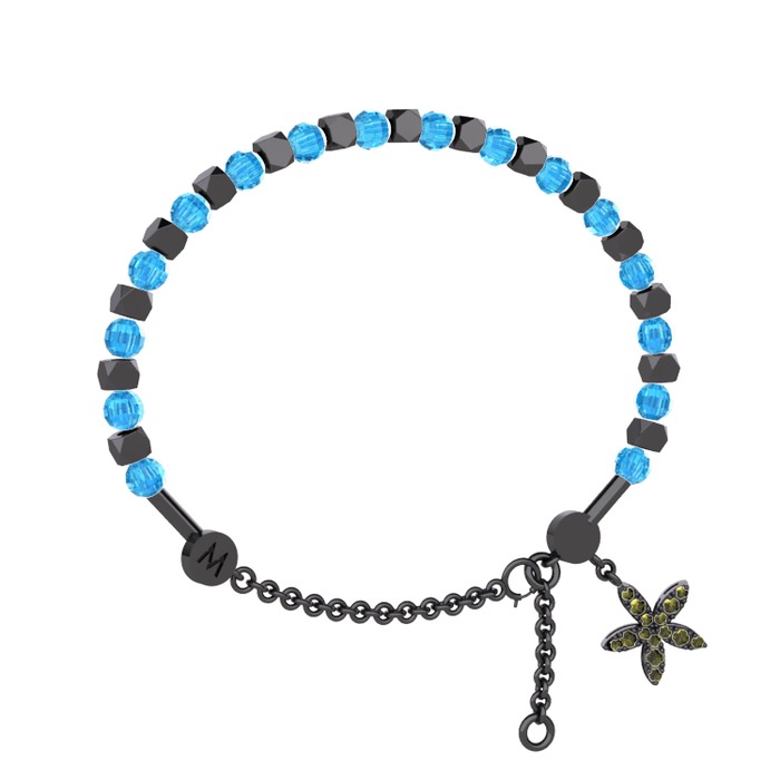 Akuamarin ve peridot 925 ayar siyah rodyum kaplama gümüş bilezik