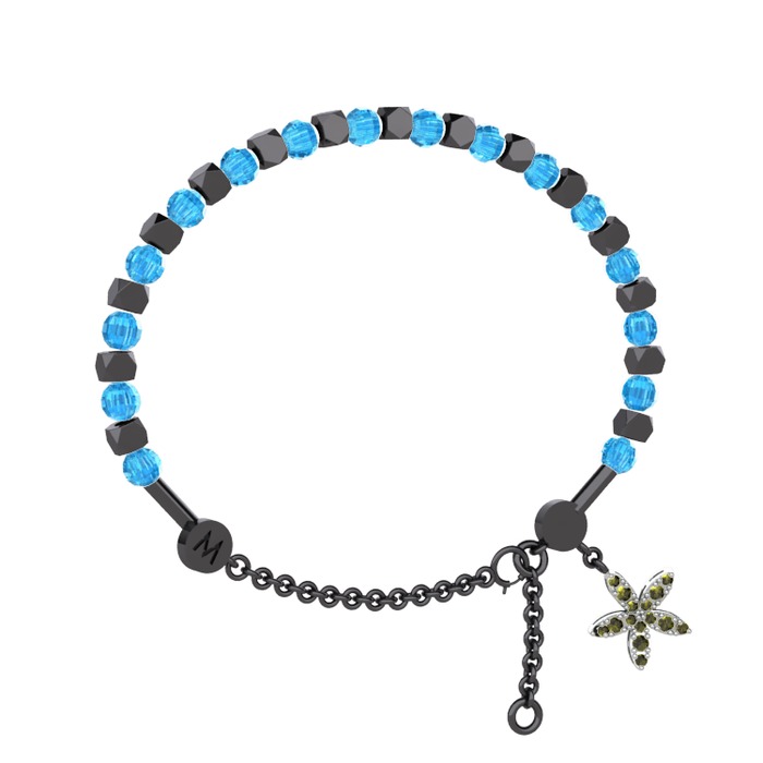 Akuamarin ve peridot 925 ayar siyah rodyum kaplama gümüş bilezik