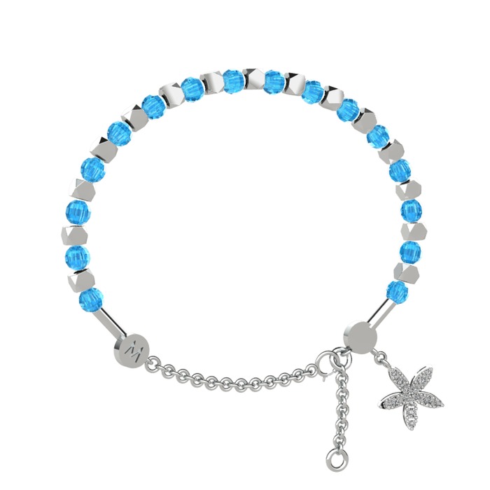 Akuamarin ve pırlanta 8 ayar beyaz altın bilezik (0.3 karat)