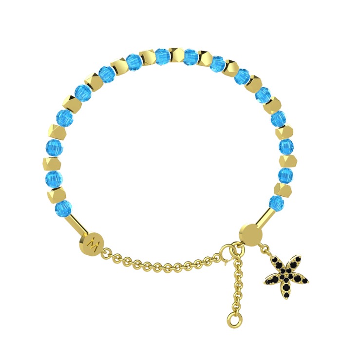 Akuamarin ve siyah zirkon 925 ayar altın kaplama gümüş bilezik