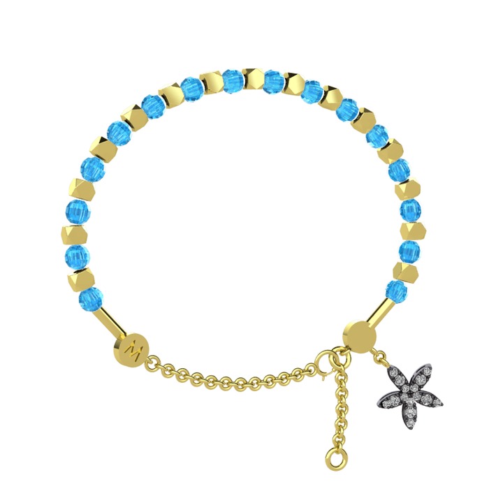 Akuamarin ve swarovski 14 ayar altın bilezik