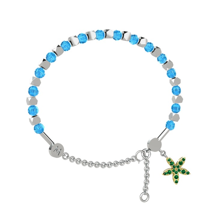 Akuamarin ve yeşil kuvars 18 ayar beyaz altın bilezik