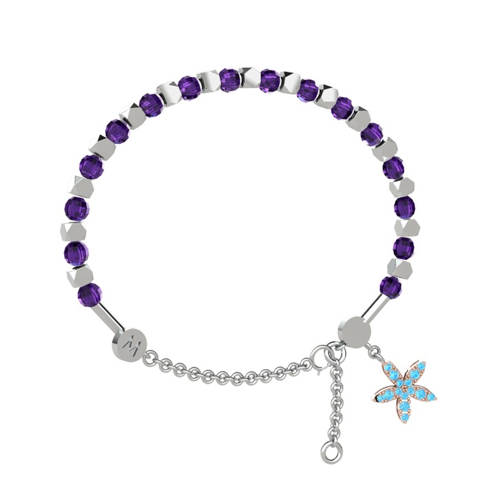Ametist ve akuamarin 18 ayar beyaz altın bilezik
