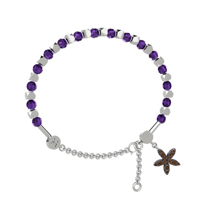 Ametist ve dumanlı kuvars 18 ayar beyaz altın bilezik