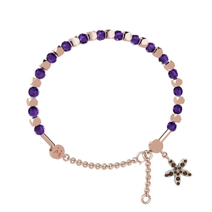 Ametist ve dumanlı kuvars 18 ayar rose altın bilezik