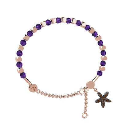 Ametist ve dumanlı kuvars 925 ayar rose altın kaplama gümüş bilezik