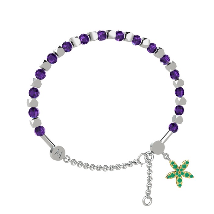 Ametist ve kök zümrüt 18 ayar beyaz altın bilezik