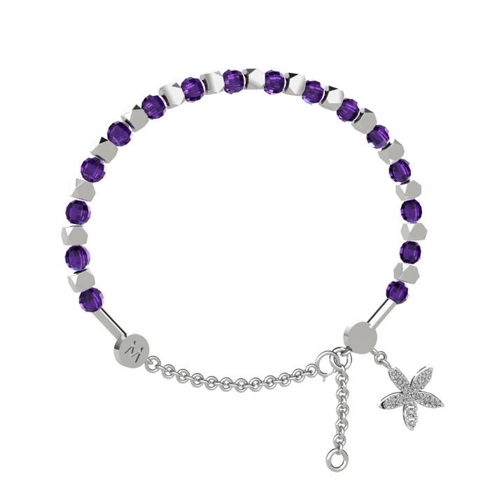 Ametist ve pırlanta 18 ayar beyaz altın bilezik (0.3 karat)