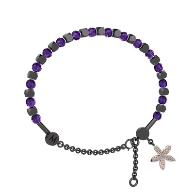 Ametist ve pırlanta 925 ayar siyah rodyum kaplama gümüş bilezik (0.3 karat)