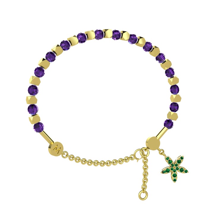 Ametist ve yeşil kuvars 18 ayar altın bilezik