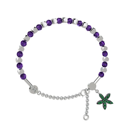 Ametist ve yeşil kuvars 8 ayar beyaz altın bilezik