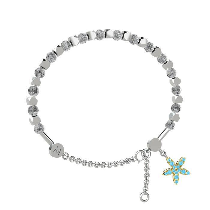Beyaz zirkon ve akuamarin 925 ayar gümüş bilezik