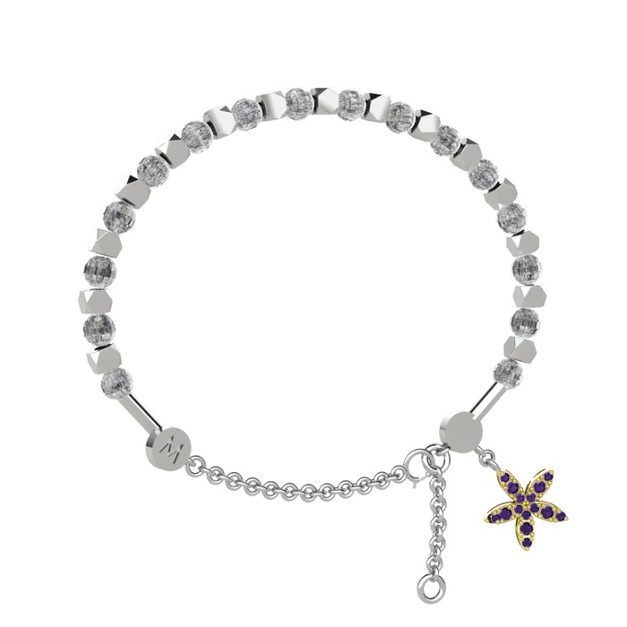 Beyaz zirkon ve ametist 18 ayar beyaz altın bilezik