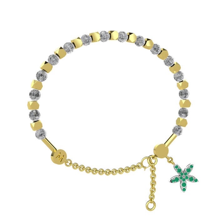 Beyaz zirkon ve kök zümrüt 14 ayar altın bilezik