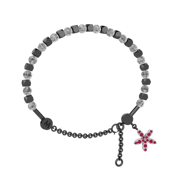 Beyaz zirkon ve rodolit garnet 925 ayar siyah rodyum kaplama gümüş bilezik